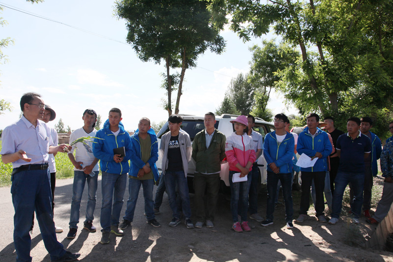 2017年張掖市多成農(nóng)業(yè)有限公司組織各部門員工對(duì)本年度生產(chǎn)基地長(zhǎng)勢(shì)進(jìn)行觀摩,并邀請(qǐng)市、區(qū)種子部門專家對(duì)田間長(zhǎng)勢(shì)、病蟲(chóng)害進(jìn)行分析、查看。